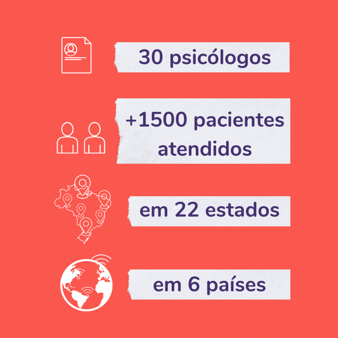 Não estamos restritos a apenas um estado ou cidade. Somos uma iniciativa nacional (para não dizer global) de terapia. Atuamos para tornar o acesso a saúde mental uma realidade para todos. Por isso acessível. Através do atendimento com psicólogo on-line, é possível chegar a mais pacientes nos mais diversos locais, dias e horários.